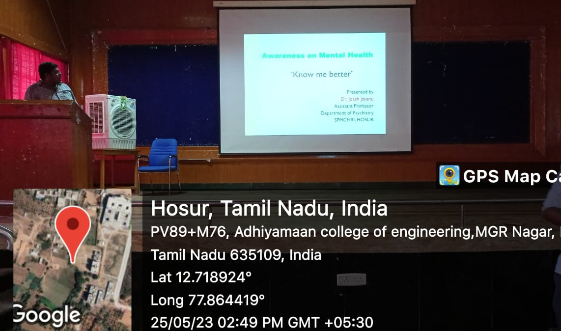 Dr. JOSH JAYRAJ, from Psychiatry department, St. Peter’s Medical College, Hospital and Research Institute, Hosur, delivered a guest lecture on the topic “Know Me Better”, to enhance the psychological well-being of the students.