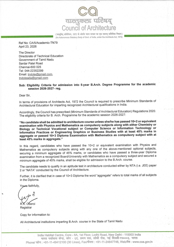 B.Arch. Degree Courses Admission