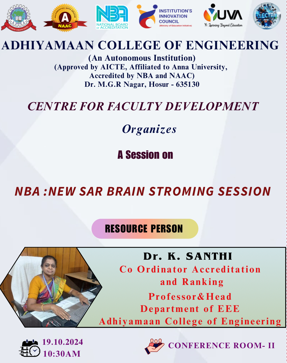 Resource Person: Dr. K. Santhi HoD/EEE Coordinator – Accreditation & Ranking, Adhiyamaan College of Engineering, Hosur