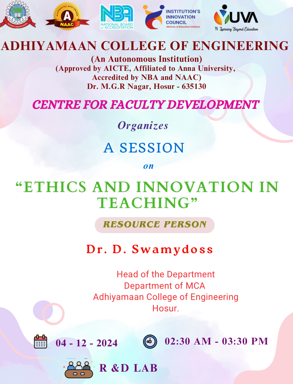 Resource Person: Dr. D Swamydoss, HoD / MCA, Adhiyamaan College of Engineering, Hosur