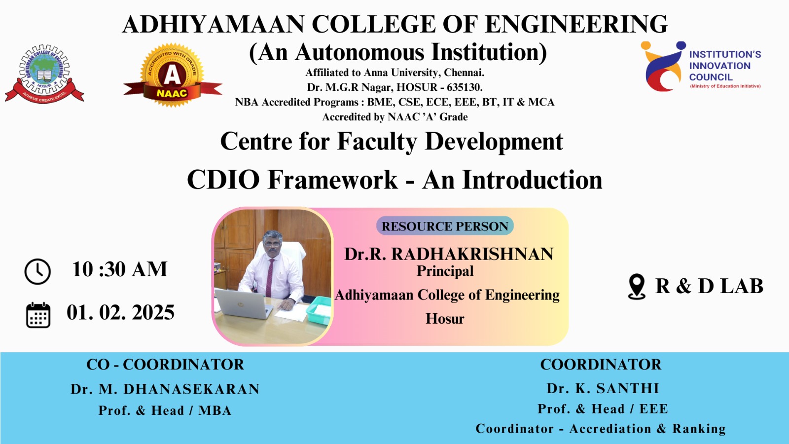 Resource Person: Dr. R. Radhakrishnan, Principal, Adhiyamaan College of Engineering, Hosur