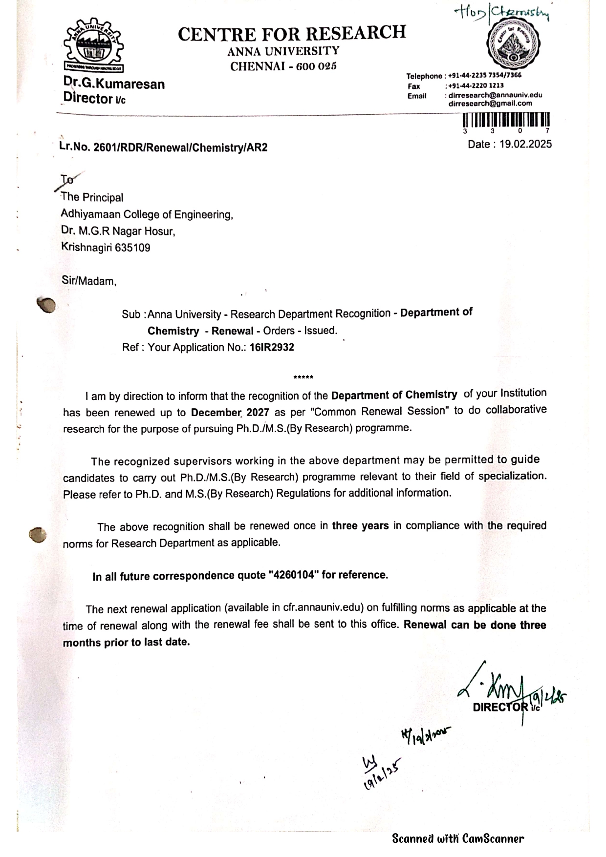Approved Research Centre by Anna University
